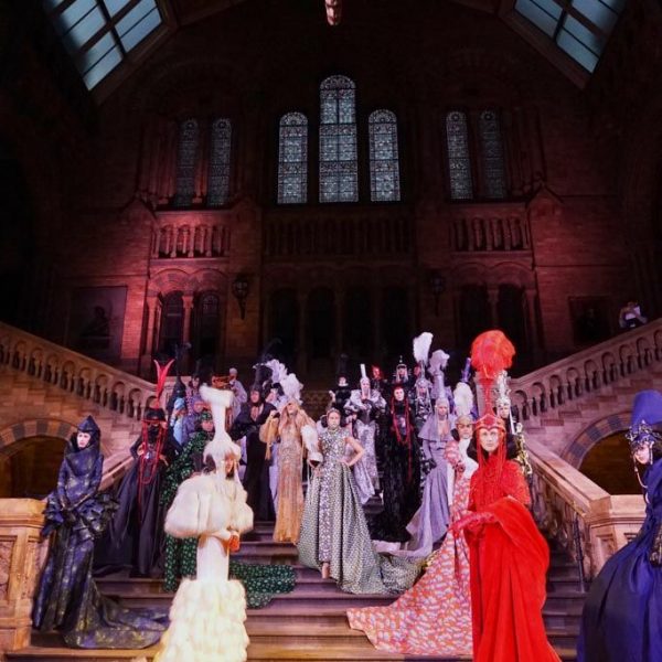 The haute couture collection itself, with its exotic elements, made the whole show special. During the daytime, the location is a major tourist spot; yet seeing the Natural History Museum during the nighttime, the stage seemed to have ancient spirits wandering around the corridors, with the music and lights enhancing the sensory experience.