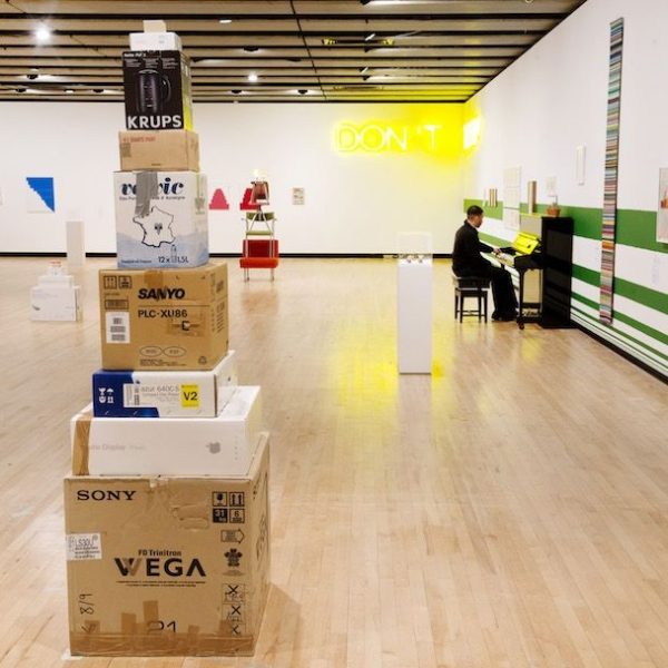 British artist Martin Creed (b.1968) is best known for his Turner-prize winning installation The Lights Going On and Off (2000). Since the beginning of his career, when he started sequentially numbering his works, Creed has developed a minimalistic approach that strips away the unnecessary, but manages to preserve an abundance of wit, humour and surprise. Work No. 319 (2004), a room half-filled with balloons, is a joyous and chaotic social experience. In other works, a piano lid or door opens and shuts automatically; 39 metronomes simultaneously tick at different speeds; giant paintings fill entire walls; and everyday objects are collected into sequences and series.