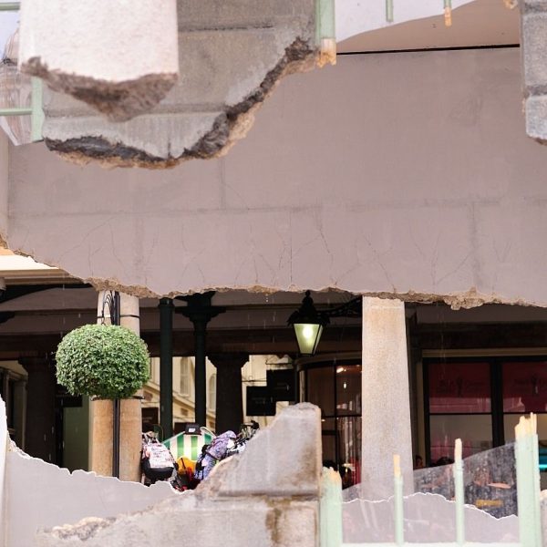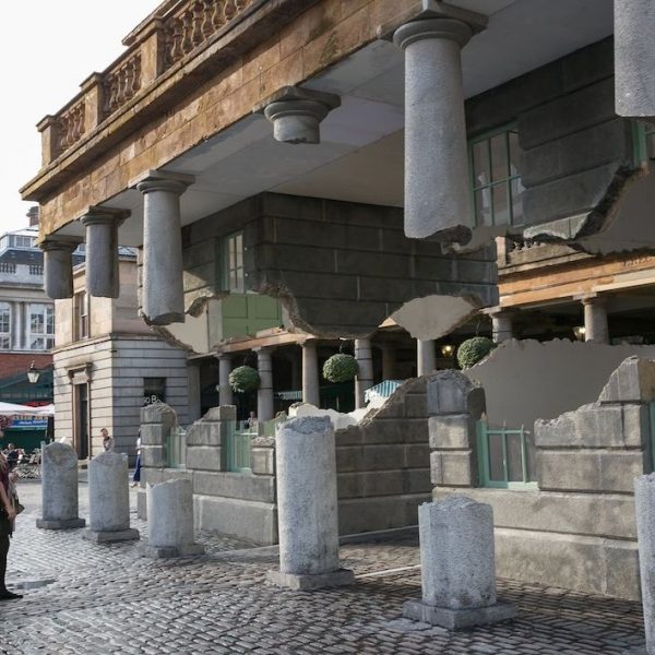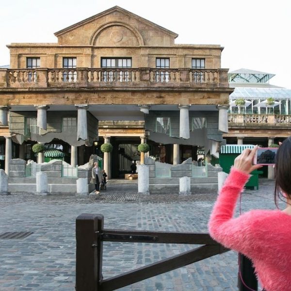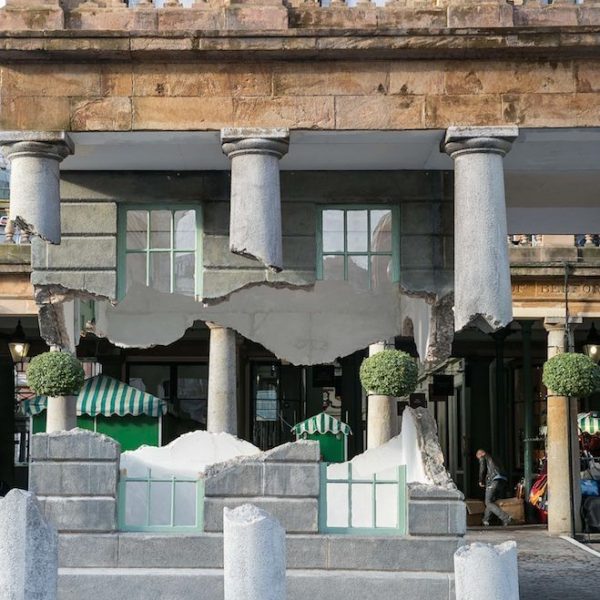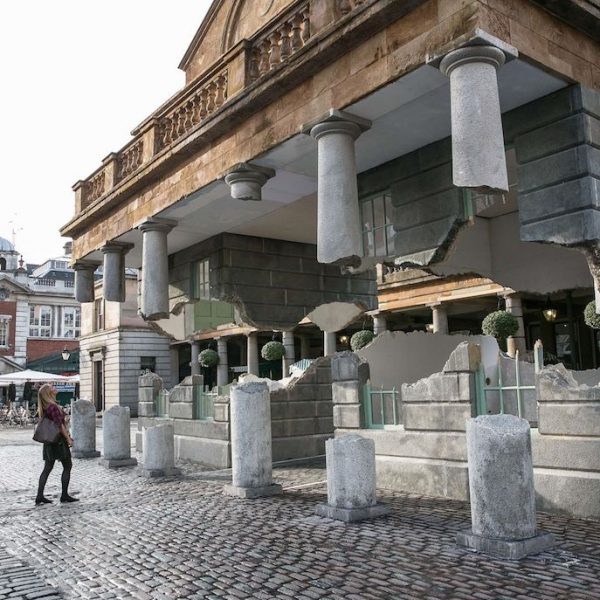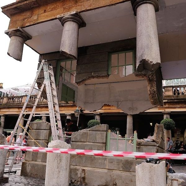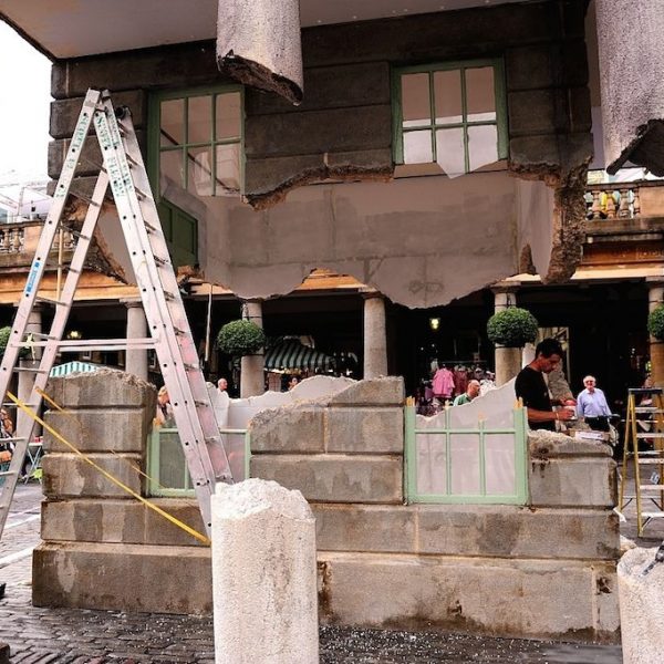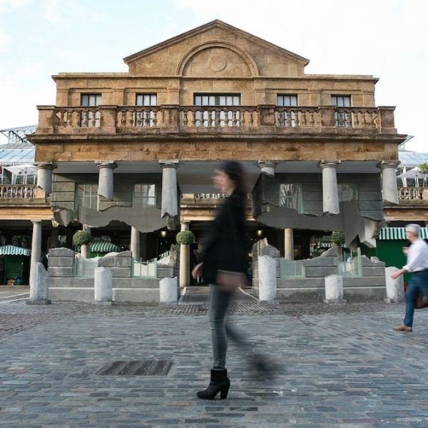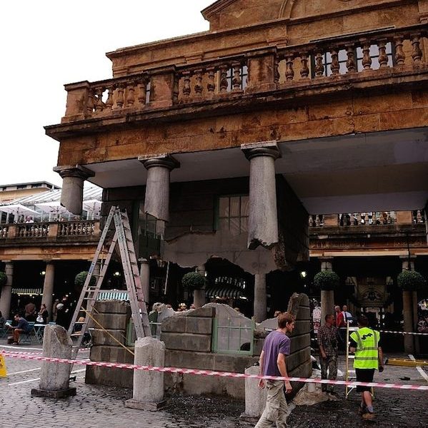 這個引發熱議的“奇異現象”正是2014年考文特花園的公共藝術項目。這組名為《帶走我的閃電但切勿擄走我的雷鳴(Take my lightning but don’t steal my thunder)》的裝置作品複刻了市集建築的原貌,甚至還原了建築上歷史的痕跡。長久以來,考文特花園擁有享譽世界的街頭表演文化。也許正是受到這些街頭藝人的啟發,該項目的藝術家亞曆克斯·欽尼克表示他將向大眾展示一個幻象般的考文特花園。