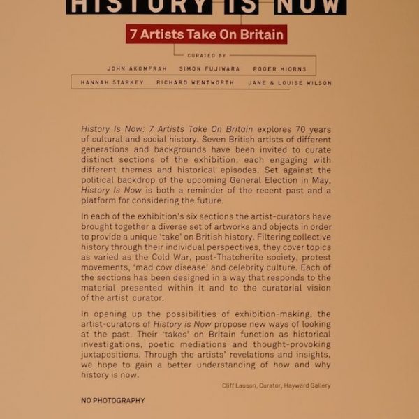 History Is Now is co-curated by Dr Cliff Lauson, Hayward Gallery Curator.