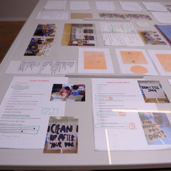 This exhibition includes a film of the performance, alongside documentation of the workshops and rehearsals. Over four months Liversidge worked closely with children aged 8 to 9 years old from the Marion Richardson Primary School in east London to discuss community, commonly held ideas, and the power of collective voice.