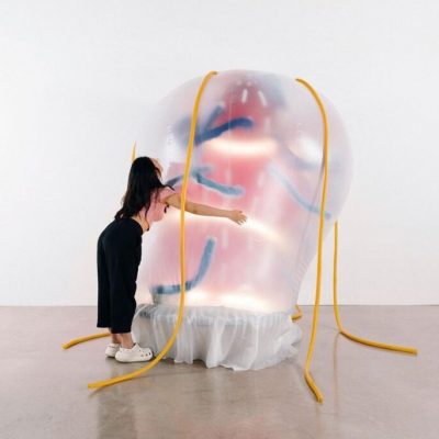 在本次展覽的作品中,可以發現與戀物、排斥、動畫、幻想、過剩、荒謬和表演有關的、更廣泛的意義鏈,它們也是回避或複雜化的符號經濟的一部分,使得作品與觀眾的感知關係變得複雜。低廉、飽和、俏皮的表象並不僅以一種明知或批判的方式來娛樂,同時也提出了一些在表面之下的更為抽象的問題。有些東西被打動了,而打動人心的東西又產生了一種誘惑力。然而,也有一些其他的東西,以某種方式隱退或存在於一個不為人知又公開可見的場域中。作品《脆弱》(Fragile)就是一例,它指向一種更為陰暗的強迫性重復,暗示了機械組合邏輯的徒勞或崩潰,它只是被迫在空洞的循環中周而復始。