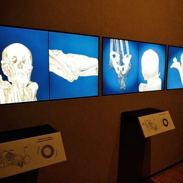 這次展覽當中展出的木乃伊大多來自埃及和蘇丹,有很多都是積極稀有和珍貴的藏品,比如2歲男童的華貴木乃伊,和羅馬時期的不知名男子的木乃伊等,而且值得一提的是,展覽運用獨特設計的交互系統,讓觀眾可以更為詳盡的了解木乃伊的局部細節和背景知識。展覽通過實物和電子交互屏幕同時再現了木乃伊的研究成果,每位觀眾都可以以“抽絲剝繭”的方式來觀看木乃伊的各個層面,可以說是同類木乃伊展覽當中最為”親民”的一個。