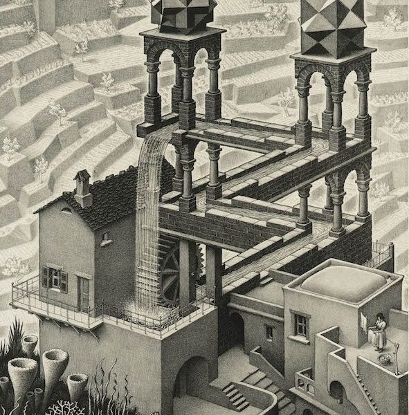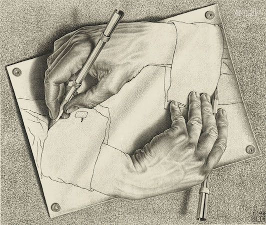 埃舍爾創造的奇幻世界裏好玩的視覺圖像和無限循環都是通過精確的數學計算而獲得,他經常與著名數學家H.S.M.考克斯特(H.S.M. Coxeter)和羅傑·彭羅斯爵士(Sir Roger Penrose)一起交流“非歐幾何”等數學問題,從中大受啟發,並將“非歐空間”活靈活現地呈現在大眾面前。