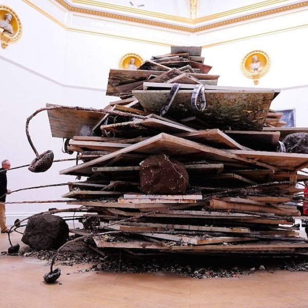 此次在倫敦的大型回顧展展示了安塞姆·基弗超過40年的藝術生涯,彙聚了他各個時期不同創作方式的作品,包括繪畫、雕塑、水彩、版畫、裝置和攝影等各種藝術形式的作品。除此之外,展覽中基弗還特地為皇家藝術學會的廣場量身定製了大型的裝置作品。從他的作品不難看出,他將歷史事件、神話傳說、文學、哲學和科學結合到自己的創作之中,運用各種隱喻來抒發對我們人類社會不同時態的深刻思考。在皇家藝術學會展廳當中,基弗代表性的巨幅繪畫佔滿了整個牆面,由碎玻璃、油彩、金屬、石頭或者是植物混雜構成的畫面張力十足,由代表毀滅、淩亂和破碎的隻言片語匯成一幅靜逸的、散髮著詩意的宏偉畫卷。