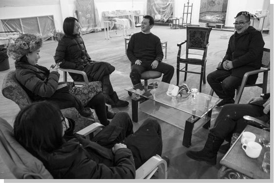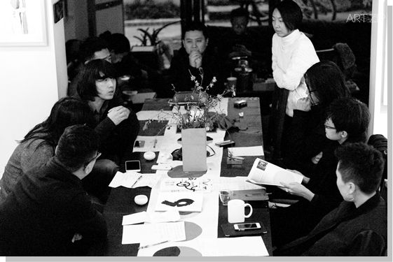 - 策展人駐地討論作品現場(從右至左) 王慰慰、王婧、朱朱、楊洋、蔣偉、李寧、劉畑、李晟瞾、彭忠明