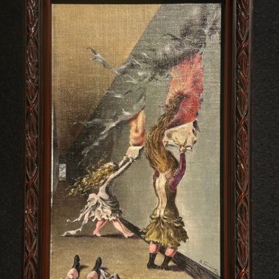Despite its modest scale, just 23.3 by 14.3 cm, Tanning’s Children’s Games carries considerable art historical significance. Painted in the early 1940s, it belongs to a pivotal group of works in which the artist explored female sexuality, autonomy, and the transition from childhood into adolescence. The painting is also closely connected to Tanning’s relationship with Max Ernst, who famously divorced Peggy Guggenheim and spent the rest of his life with the artist.