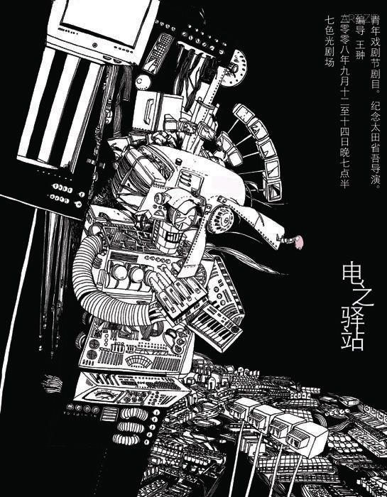 《電之驛站》是薪傳劇團導演王翀的作品。是 幾部中國大陸地區作品中唯一一個擁有獨立 網頁作品信息的。這一點應該和導演本人的留 學經歷有關,作品的歸檔和單部作品的信息頁 宣傳是國內劇團經常忽略的細節。在看作品之前,讀了網站上導演的話:“北京的戲劇與中國 的現實無關。北京的戲劇也與世界戲劇的發 展無關。體制內外的戲劇人駕着體制內外的華 車,在官場和歡場間的半空中飛來飛去,一塵 不染,從不落地。他們用歌功頌德、男盜女娼、 裝瘋賣傻的作品序列把劇場也變成了官場和歡 場。”“通過在樓道、大廳、鬧市街頭等非常規場 所近乎修煉式的訓練,《電之驛站》的演員們 在高速流轉、眾聲喧嘩的社會環境中用沉默的 身體創造出一個全新的時空:只和戲劇、身體 與社會的現實相關,與官官和歡歡無關。”