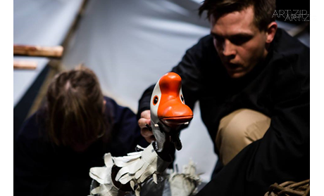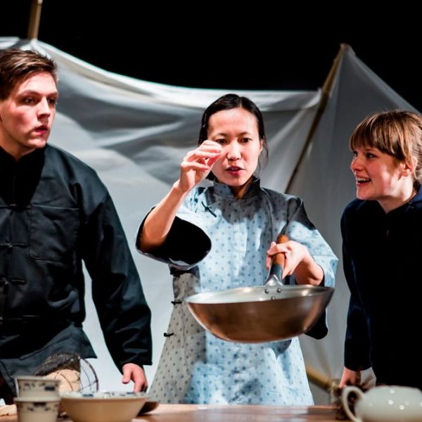 於是這部作品, 就這樣香氣滿溢地閃亮登場。用港餐廳不能再熟悉的燒鵝命名, 講述了那些已經褪色的歷史中平實的溫情。以第二次世界大戰為背景,故事發生在1941 年 的冬天。日本軍隊攻佔香港,廚師金怡的大排檔的命運也隨著這座繁榮和平的城市的淪陷而前途未蔔。在食品匱乏的難題面前,金怡必須用她的力量和智慧,陷入混亂;面對糧食短缺的問題。金怡必須用她的力量和智慧,保護自己,當然還有她的拍檔——古靈精怪、非常嘴饞的寵物鵝蓉蓉,他們的命運將是怎樣的呢?通過形體、偶戲和物件劇場的相互交融,該劇講述一個關於食品、生存和犧牲的故事;殖民歷史這段鮮為人知的篇章也被詼諧地呈現在舞臺上。