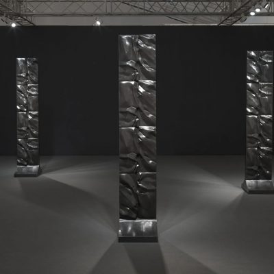 Nicoletti’s presentation of Josèfa Ntjam’s work was another highlight, featuring photomontages that blend fact with fiction, exploring narratives of the Middle Passage. The tension between fragility and form was emphasized in PM8/Francisco Salas’s delicate glass sculptures by Marija Olšauskaitė, suspended in space to create a visceral sense of fragility.