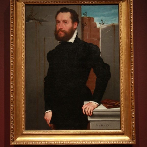 Moroni’s portraits depict the people of the world and time in which he lived, from elegant men and women of high society shown in glittering dress to members of the middle class engaged in their trade. One such work is The Tailor, as highly praised in its time as it is now (“revolutionary” – Jonathan Jones,The Guardian). What all of his works share is a startling naturalism and vitality, rarely matched by other artists of the period and anticipating the realistic style of Caravaggio and, later, Manet.