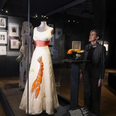Her exchanges with Dalí, Jean Cocteau, Man Ray, and others transformed her designs into the most bodily expressions of Surrealist practice. The Skeleton Dress, the torn gown, the shoe hat, the Lobster Dress — all became signature works, bringing the humour and absurdity, the irreverence and creativity of modern art into the context of haute couture.