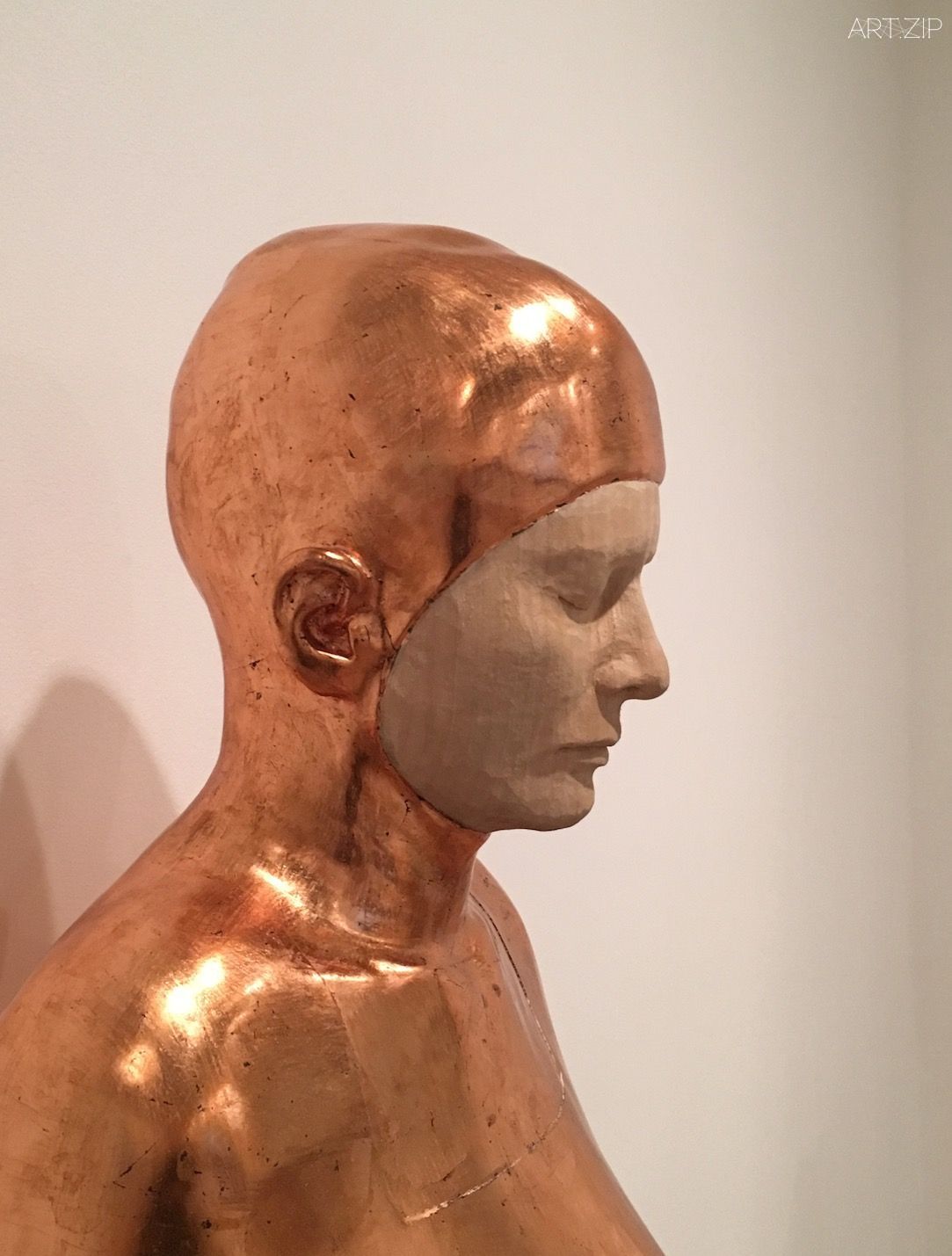 The display is named after Paloma Varga Weisz’s Bumped Body (2007), an ambiguously gendered pregnant form. The white figure encased in a gleaming copper shell hangs from the gallery wall. It explores the idea of pregnancy as an extreme form of selfhood, examining the tension between the expectant body as a subject and an object.