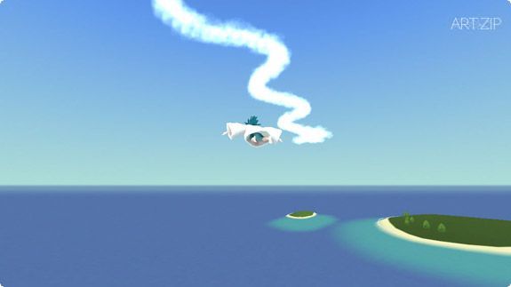 Moreover, Chen can also be regarded as a contemporary artist, because his work explored the critical issues in contemporary society. His observation, like many avant-garde masters, is acute and ahead of time. For example, Cloud elucidated his anxiety caused by air pollution. It was produced in 2005, and was based on his childhood memory: he was in a hospital in Shanghai due to asthma, dreaming about flying above the skyscrapers freely inhaling fresh air. The game was set in a scene consisting of blue sky, white clouds, and green islands. The participants would control a flying boy collecting and interacting with white clouds and purify the polluted environment. When he arrived in the US, Chen was sad to see the difference between the skies in the US and Shanghai. The game reflected the critical issues caused by Modernisation, Industrialisation and Urbanisation. Chen’s satire on the Chinese environment was prophetic, because the smog problem in China had not become apparent until 2010. Chen regarded himself as an artist and he stressed on such an identity by comparing with famous directors such as Steven Spielberg and Hayao Miyazaki. Chen said:“Deep down I feel I am still an artist, wishing to make things and share. Even though my major is computing, for me it is just a suitable approach to art.”
