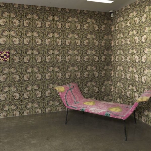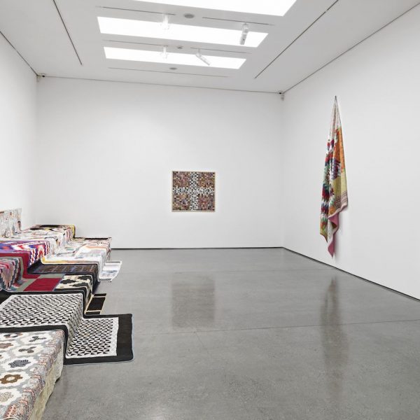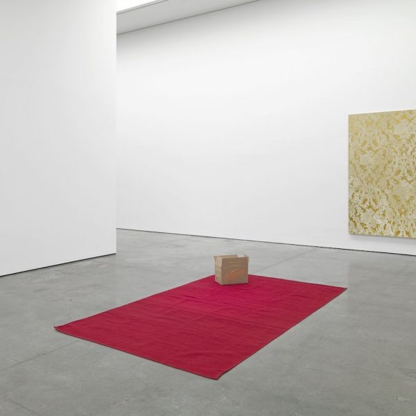 In his series of ‘Carpet’ works, Carpet #3 and Carpet #5 (both 2003), Mike Kelley uses carpet as a ground for abstract paintings that deftly allude to the domestic and quotidian world. References to the domestic continue in Rudolf Stingel’s conceptual paintings, in oil and enamel on canvas, which exactingly recreate sections of elaborate damask wallpaper motifs, mixing references to both decorative art and painting in one succinct gesture. With their all-over patterns, carved out in relief, Stingel’s de-centred compositions question the act of looking and the edge of the painting as visual limit. In Franz West’s work Nannerl(2006), steel, coco mat and carpet combine in a hybrid sculpture that incorporates textiles to suggest both a use and aesthetic value. An upholstered bench, the work sits poised between its recognition and use value as furniture and its role as sculpture, activating the traditionally passive relationship between viewer and artwork.