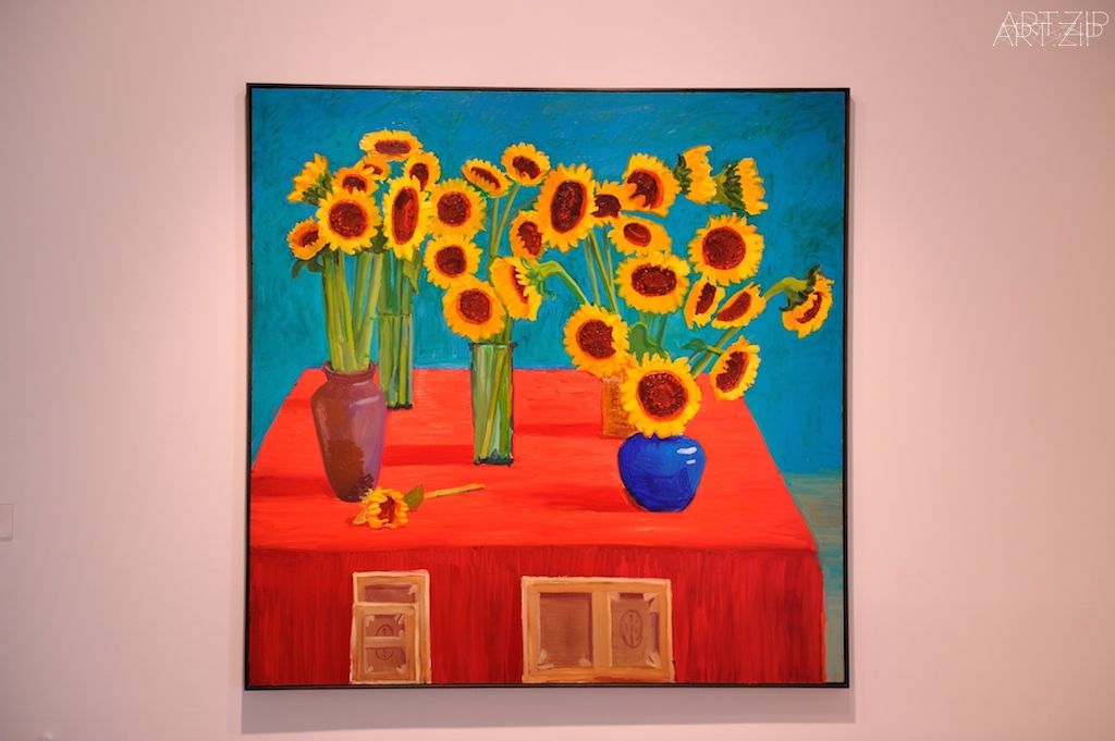 Highlights include David Hockney’s 30 Sunflowers (1996), a vibrantly coloured oil on canvas, and Peter Doig’s large-scale painting Green Trees(1998) depicting an imagined forest. Also featured is a video by Estonian artist Jan Toomik, Dancing with Dad (2003), which shows the artist dancing in a sunlit woodland where his father was buried and Andy Warhol’sbrightly coloured screen-print of a cow.
