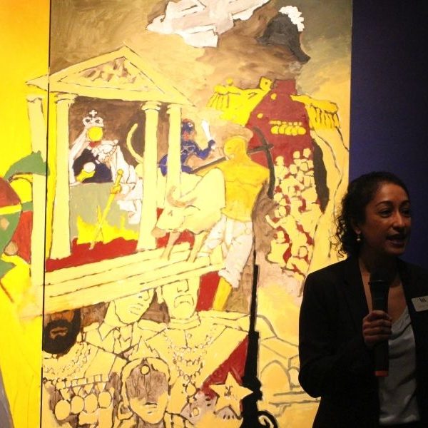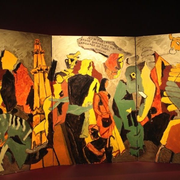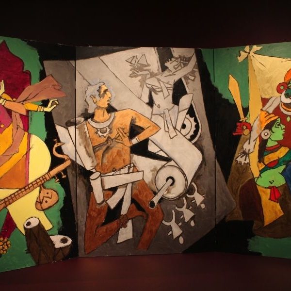 著名印度艺术家M.F 侯赛因(1915-2011)最后创作的九幅作品在V&A博物馆首次公开展出。“印度文明”系列由八幅意义重大的三联画组成,每幅宽12英尺, 高6英尺。这些作品表现了侯赛因眼中印度富饶的文化与历史。它们捕捉到印度充满生气的城市、多彩的印度节日、偶像人物和历史事件。这些壮观的大型作品同一幅单独绘制印度神灵象头神的画作一起展出。这幅画作担纲此系列作品有象征意义的开场。