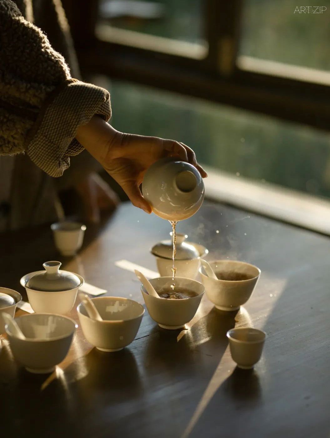 水是流动的,而器物却是处于脆弱的静止状态,而茶则将它们结合在一起。自古以来,水及其新鲜度对于茶叶及其品质至关重要。中国历史上,泡茶的水会优先从高山的急流中收集。麻利对“功夫茶”方法的风格化强调了这一理念:在器皿、茶和水的相遇中,新的空间和动作在消失在叙事流中之前短暂地被创造出来。