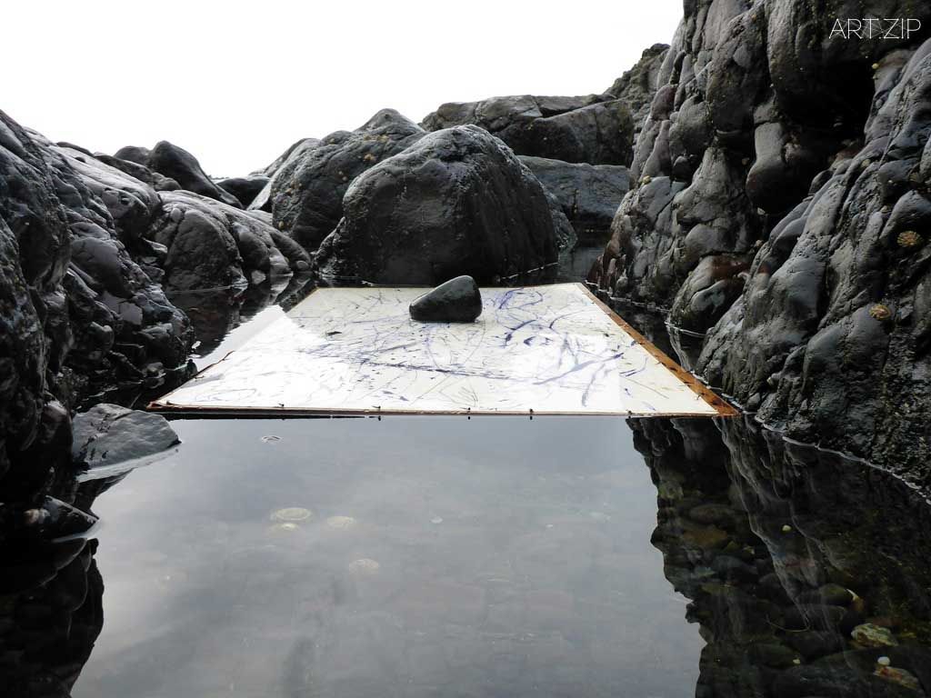 I don’t have an aesthetic vision or plan in my mind when I start to draw or paint. I simply respond to the environment around me and just let the blank canvas or paper find itself within the universe. The drawings always start their life as an empty space, a void of whiteness on paper which I nail to a wooden board and take out into the ocean. I like the idea of taking into the vast nothingness, void and abyss of the ocean a smaller space of nothingness and emptiness in the form of the paper. What happens from that point in time just flows through time and most of the time I’m not fully aware or conscious of what I’m drawing. I drift in free association with the ocean and I draw what I see happening around me with pen on paper. It’s always about being mindful and observant and being in the moment.