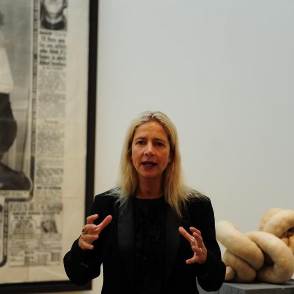 Since the late 1980s, Lucas has created sculptures and installations that focus on the body. Drawing upon everyday materials such as cigarettes, tights, furniture and vegetables, she probes representations of gender, sexuality and national identity. Her work alludes to historic movements such as Pop Art and Arte Povera while addressing the universal concerns of nature and mortality.