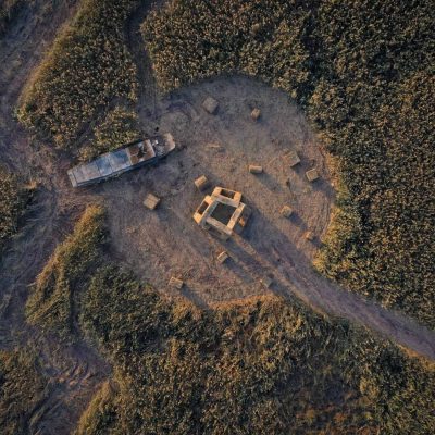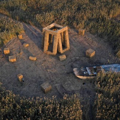 Playground of Building Blocks, installation view Art in the Fields, steel, bamboo and water reed, Dongting Lak China, 2023.