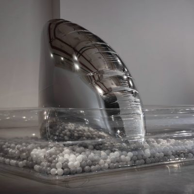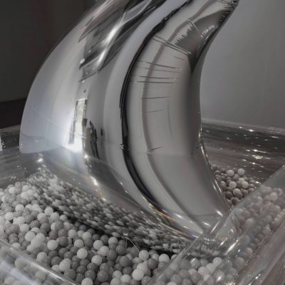 作品《背鰭》通過象徵鯊魚的背鰭,引發觀眾對深處隱藏之物的想象和思考,帶來一種神秘和未知的氛圍。鯊魚的出現提醒我們存在著一種先於人類存在的現實,或者是在有人類記錄之前的遠古時代。鰭的出現定義了深處與表面之間的關係,以及可見與不可見之間的關係。在此基礎上,包含了對虛幻和現實進行界定和組織的過程。在這裡,雕塑好比一台記錄機器,不僅能夠反映和處理時間的變化和動態,還能區分和揭示虛實之間的關係。