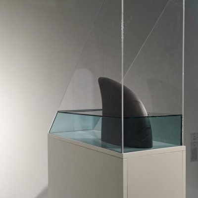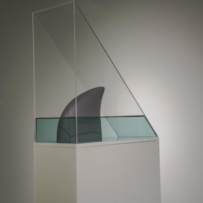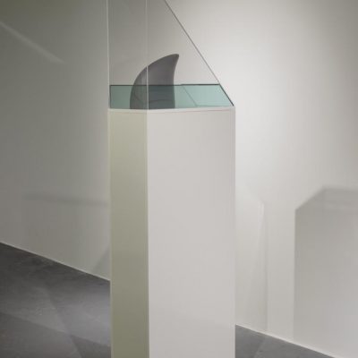 ‘Dorsal Fin’ introduces the spectre of what lies within the deep. The shark emerges as a reminder of pre-human reality or a time before the human record of it. The emergence of the fin defines the relationship between the deep and the surface, between what is visible and what is retained within the invisible. Built within this, is the operation of the framing of the spectre and the real. Sculpture is here a recording machine like configuration that is capable of not only mediating upon the temporal flux but also determining a relation between what is fake or real.