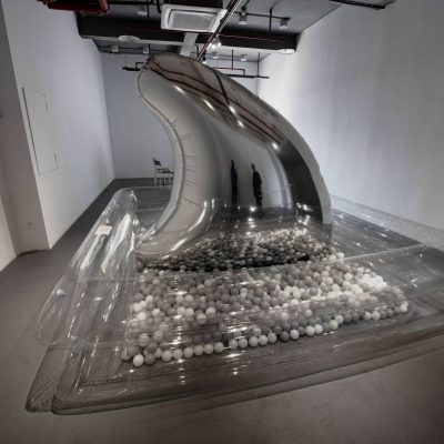 A project that served as a forerunner of this exhibition was a large-scale work located within a remote landscape as part of the Art in the Fields exhibition at Junshan Island. The work was called ‘Playground of Building Block’ (2023) and was ten-meter high and was constructed out of the abundant bamboo and water reeds from the landscape. There was a fragility to the structure despite its imposing scale and this reflects ecological uncertainty. What is offered as a counterpoint to this instability is the offering of a playful way of playing with the elements through which reality is constructed.