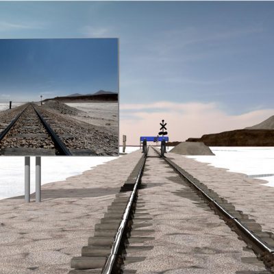 ‘Stay on the Path’ depicts a section of the rail track that runs from Oruro, Bolivia. The imagine is a reminder of how lines are drawn into the landscape in the search for materials to extract through mining the earth. This shows the fold within the scanning process and the desire to dig deep into the reality of wanting to extract something as an outcome of the scanning process.