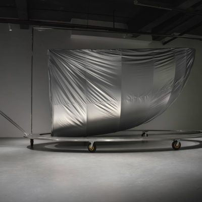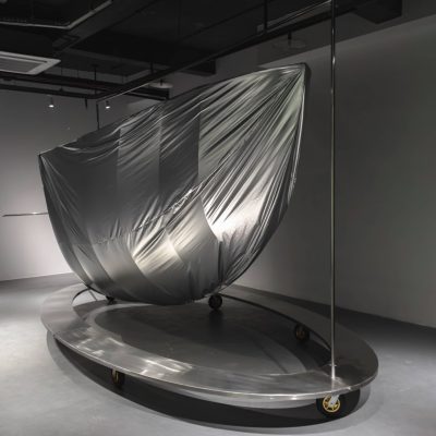 The Landscape Awaits, installation view Yunling Art Centre, stainless steel, cabon fibre, pv fabic, resin, cord 180 x 57 x 180 cm, 2023