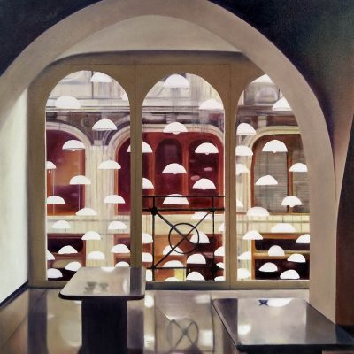 AB:When I was at The British School at Rome in 1997, I was inspired by Roman urns and sculptural objects that I found in the landscape of the city. The slower pace of life at The British School at Rome meant I could allow myself to indulge in new ideas and to spend more time absorbing frescos and 17th and 18th century paintings. On my return to London, the shift to ‘chairs’ from semi-abstract ‘Roman urns’ and ‘cactuses’ seemed to me to be an unusual leap, but the two styles are connected. Being back in the UK and enjoying London’s beautiful iconic designs, led to a shift in focus, and an interest in more modern, structured and designed forms such as bridges, buildings, and furniture. This was an important stage, one that led to my current style. Since then my work has continued to evolve and has over the years shifted from photorealism to a more abstract form of expression, with fluid brush strokes emphasising the contrast of light and shade.