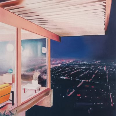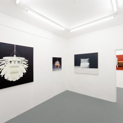 AZ: Many of your paintings capture interiors without people, such as hotel lobbies, chairs, or lamps. What role does this absence play in your work?