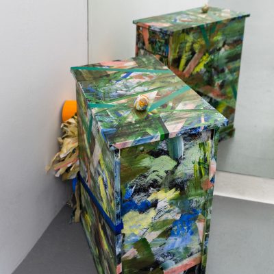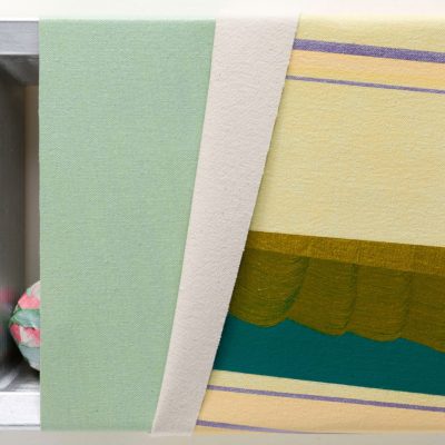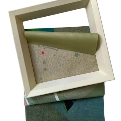At Tiderip, Baraitser’s early paintings are on view—meticulous renderings inspired by iconic designers such as Mackintosh, Eames, and Poul Henningsen. These works focus on reimagining classic furniture and interiors, revealing her refined understanding of structure and order. Alongside them are Yu Xiao’s installation and her Da Vinci Mirror series, which meditates on perception, perspective, and the intersection of abstraction and reality. Referencing Leonardo da Vinci, the series pairs precise geometric structures with irregular fabric folds, metaphorically addressing the tension between expectations and concealed emotional depth. The formal and structural interplay between the two artists’ works opens a space of dual inquiry: into order, and its disruption.