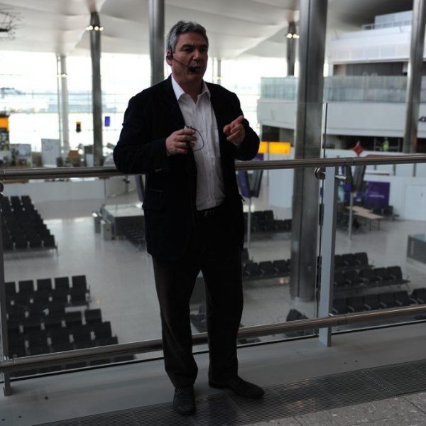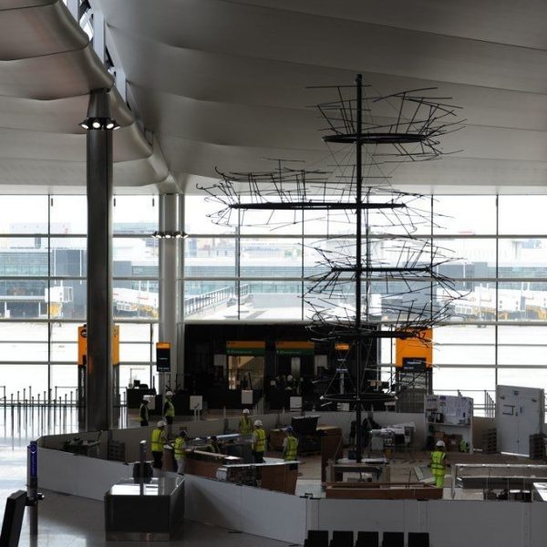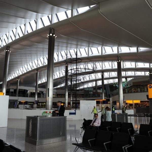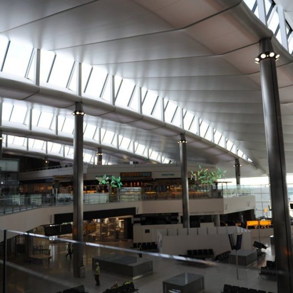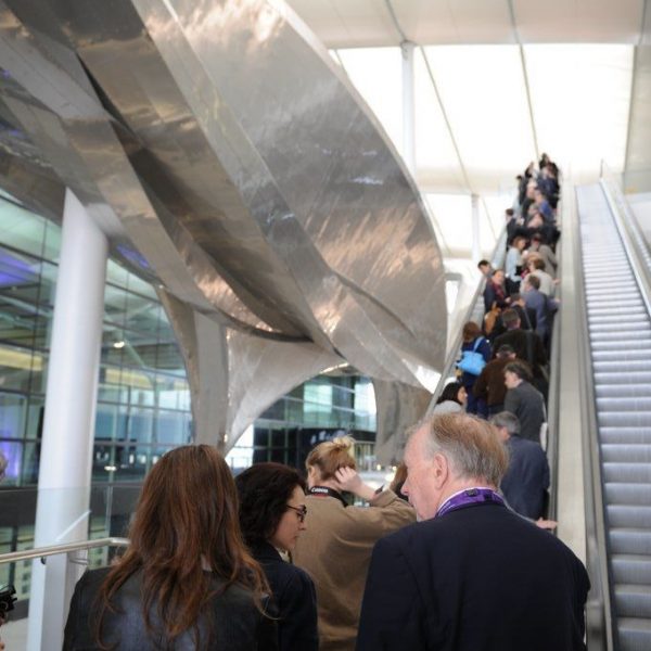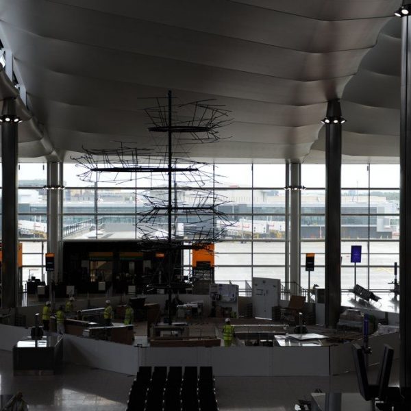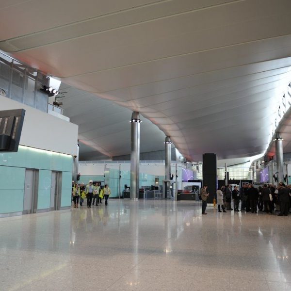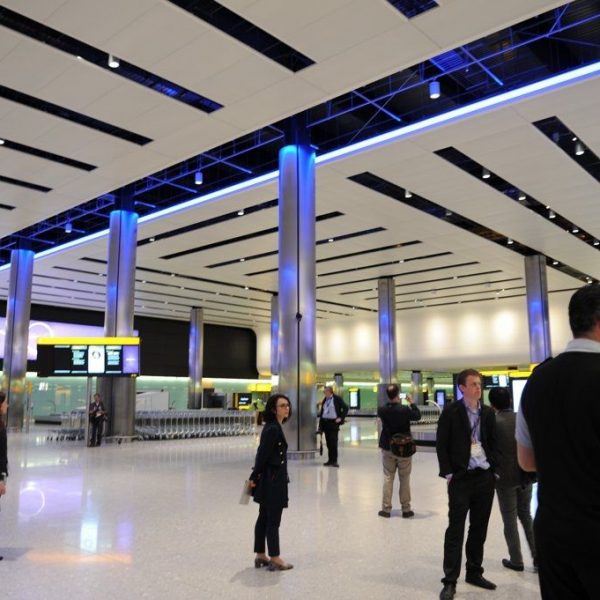 發佈會上發言的人很多,藝術家Richard Wilson RA,建築設計師Luis Vidal,星空聯盟CEO Mark Schwab,希斯羅發展部主任John Holland-Kaye,英國文化委員會執行官Sandie Dawe,英格蘭藝術委員會Peter Bazalgette爵士,悉數到場,從各個方面介紹了新航站樓的情況,上百家媒體也很活躍,提出了很多尖銳的問題,比如對第四代航站樓的理念和安檢之間的關係的質疑,以及公共藝術和空間對公眾的影響等問題。一上午的發佈會更像是一個聽證會,了解到了很多冷知識,比如從1﹣4代航站樓的設計異同,比如教堂和機場之間的類比,比如機場施工規格的各種參數等等。結束了發佈會,我們參觀了還沒竣工的航站樓,也是經歷了我人生中最為嚴格的安全檢查,個人感覺這個航站樓設計的很人性化,功能性很強,而且自然採光非常好,讓人很舒服從,體驗上來說我覺得比第三航站樓強不少。
