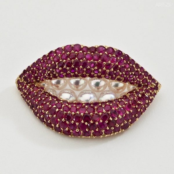 Dali’s pieces are rather symbolic, as if they are waken from various surrealist dreams of the artist. While the color and texture of the gem stone and metals seem to be re-illustrating Dali’s work in a unique 4D form. The 18k gold earrings made of rubies, emeralds and diamonds told a historic incident: British Prime Minister Chamberlain tried to call Hitler to avoid the war. He was not successful and the 2nd World War started. The telephone was a symbol of the failed conversation between Chamberlain and Hitler. This beautiful bright colored lip shaped brooch was inspired by the smile of Marilyn Monroe. Dali was in love with her ruby lips and pearl-like teeth and created this timeless piece.