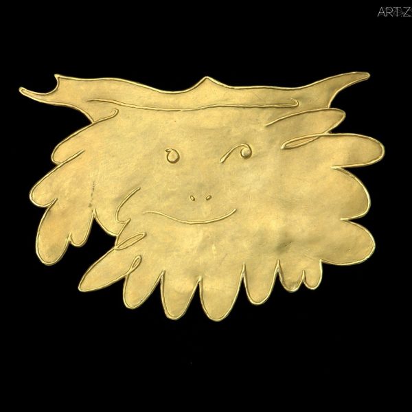 Picasso loved experiencing all forms of median. He started making terra-cotta in his holiday home and made small as well as large pieces. He has devoted some of these to his lovers and some to relatives and friends. One day, Picasso saw his dentist Dr. Chatagnier making a golden crown for teeth, he asked him, “Could you teach me how to make this?” He then started his collaboration with Dr. Chatagnier. From the golden pieces we can visualize the lines and forms of characters in Picasso’s other art works. In addition to his signature many of these pieces also have Picasso’s finger prints embedded.