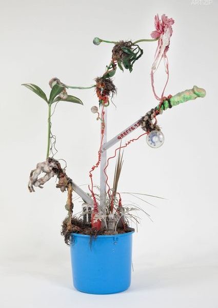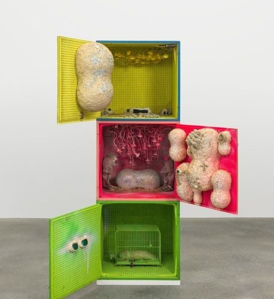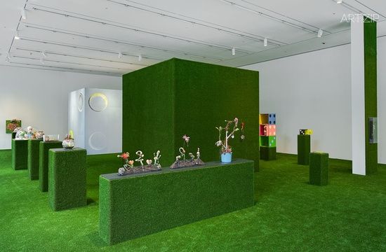 此次HAUSER & WIRTH畫廊展出了工藤哲巳于1963至1972頭十年在巴黎創作的代表作品。強烈的視覺衝擊是進入畫廊的直觀感受。展廳被綠色的人工草坪包圍覆蓋,色彩跳躍的藝術作品在空間中吸引著觀眾的駐足欣賞。但乍看之下的鮮豔與活躍只是腐敗與墮落的假象。由廢棄工業原料製成的蛹、寄居動物、陽具等諸多腐敗腐爛元素構成的裝置和雕塑被豔麗外表所覆蓋,傾訴著藝術家對於日本戰後社會一派繁華表面之下的衰退本質的諷刺。