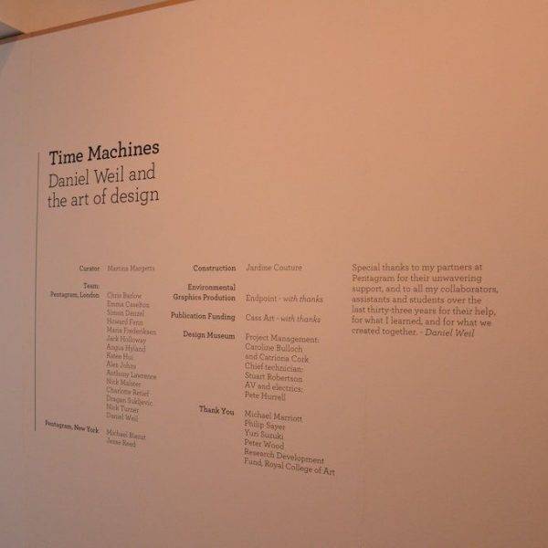 倫敦設計博物館在2014年5月14日到8月25日舉辦了《時光機器:丹尼爾·韋伊設計的藝術》,展示了設計師丹尼爾·韋伊三十年來的設計實踐,這也是他第一次博物館級別的個人展覽,從一個年輕的皇家藝術學院學生到後來在阿根廷與潘特格拉姆的長期合作。