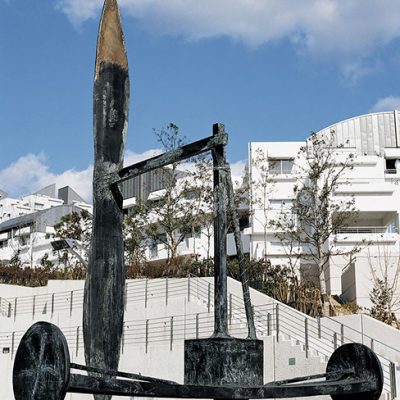 RIA: Public sculpture plays a very special role within its environment, and we must be aware of this. It can’t be a UFO that appears out of nowhere. Whether it’s an urban setting or a natural one, many factors must be considered. The dimensions or scale of the work are very important. A piece must be just the right size to function, along with many other factors. When I got an offer to make a public installation for Nishinomiya, Japan, I visited Japan several times, and I was especially inspired by the shape of a seated Buddha, the shape of a triangle. That inspiration led to the creation of Najio Airplane.