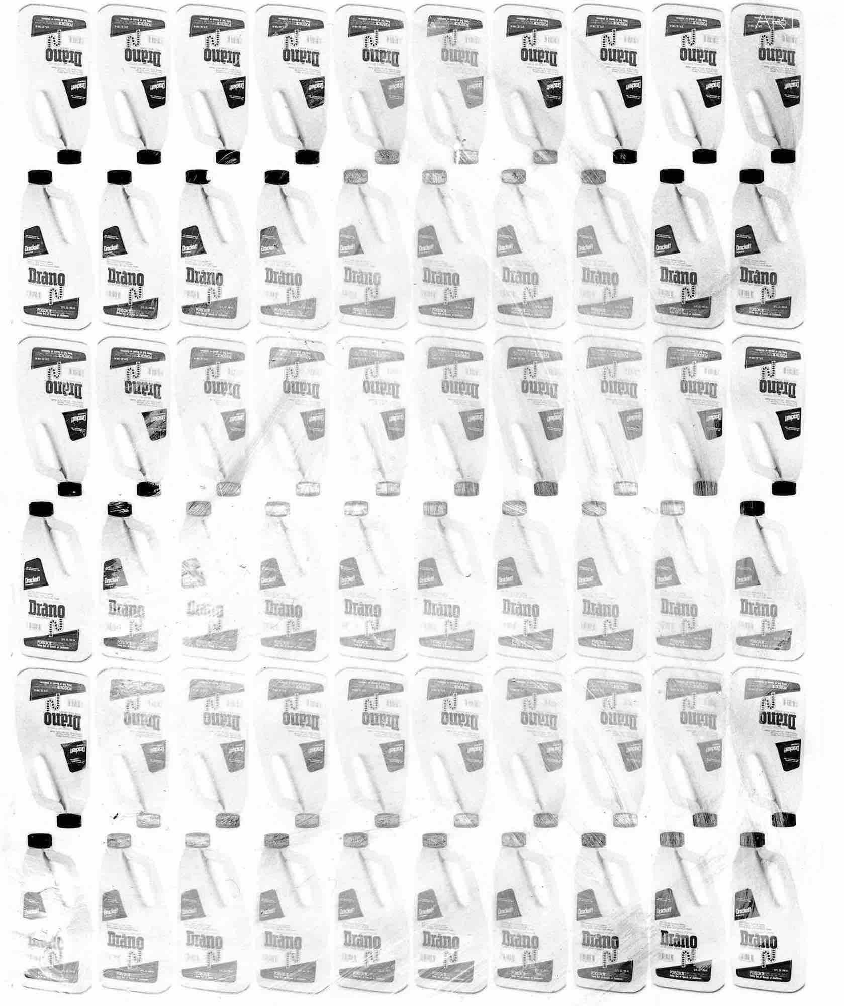 Considering the materiality and physicality of ‘things’ and playing materials against each other suggesting weight and movement within the stillness of repeated photographic images. The new wall-based casts feature hidden prints of the American cleaning product ‘Drano’, which features in Vonnegut’s novels, notably as a tool by which several of his characters meet their ends; Once in situ, melted with a heatgun the image is revealed, drips also forming on the works and pooling beneath on the floor.
