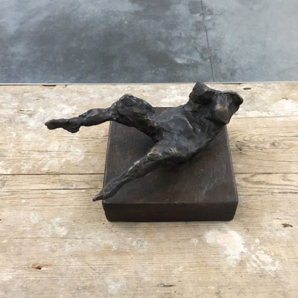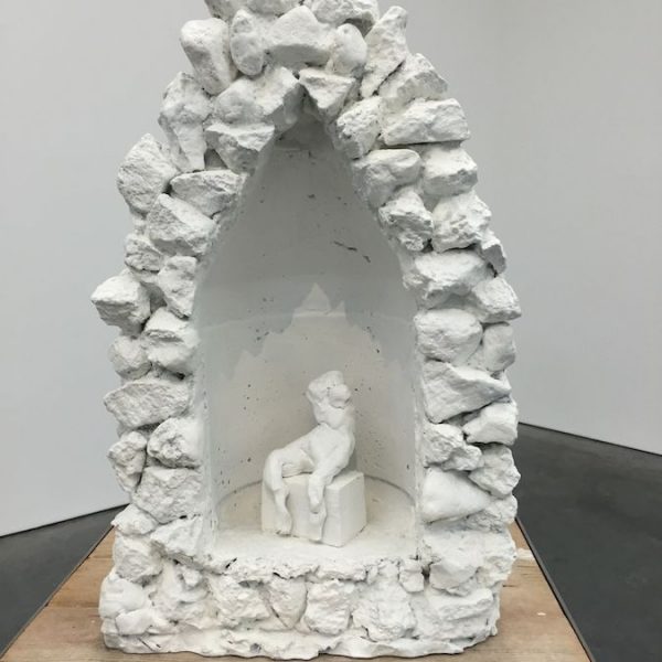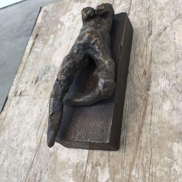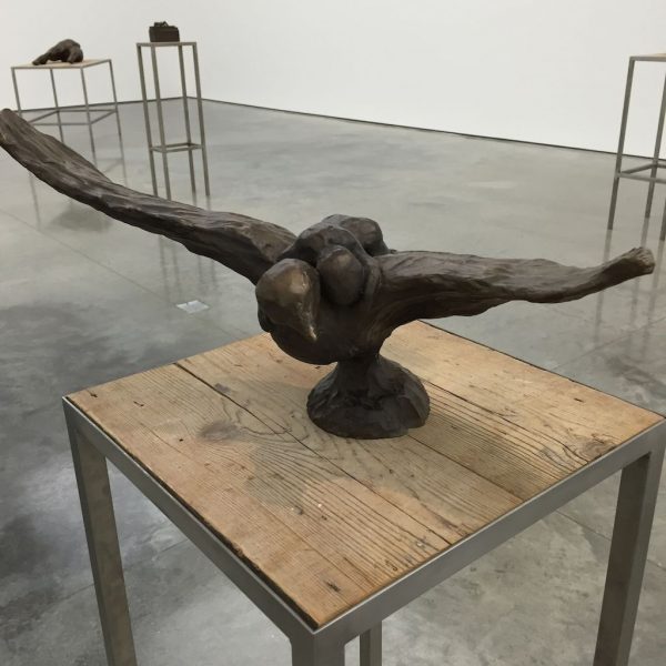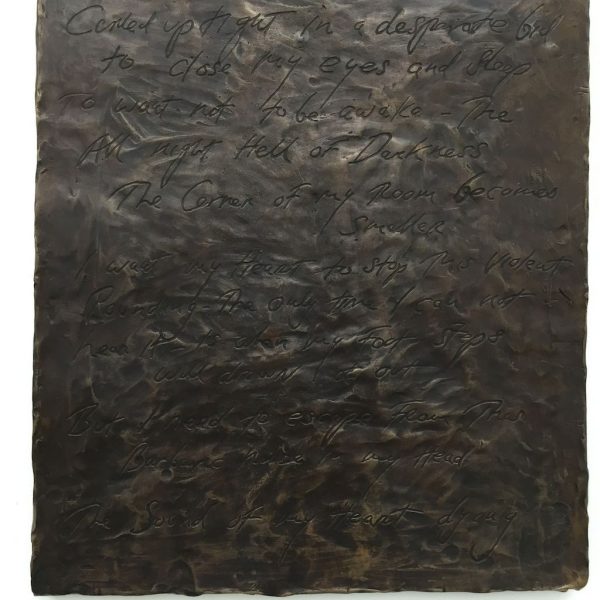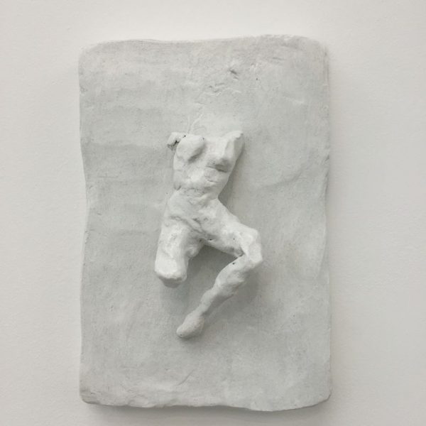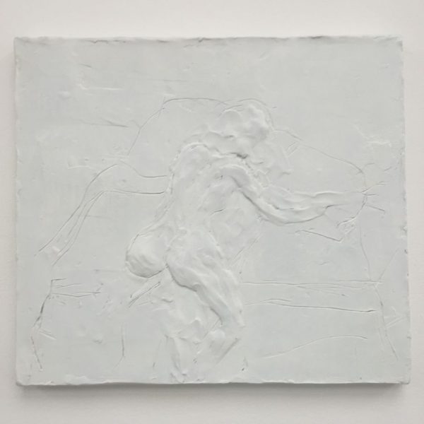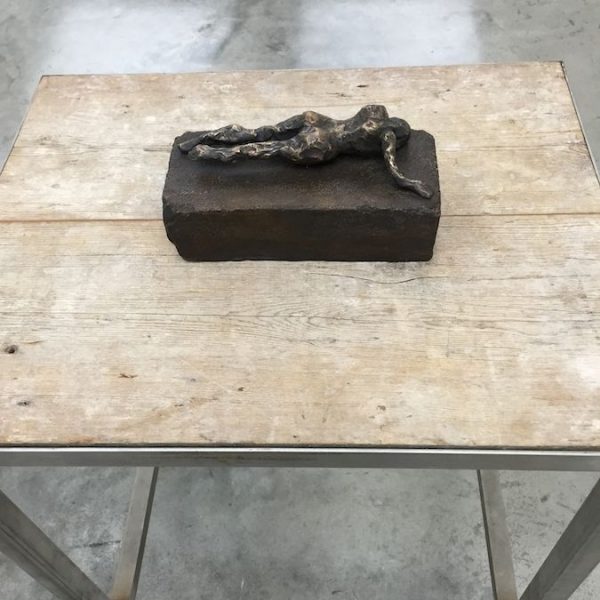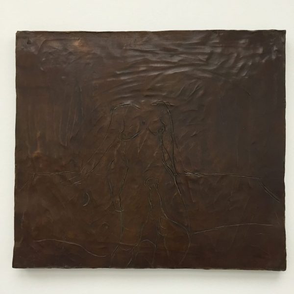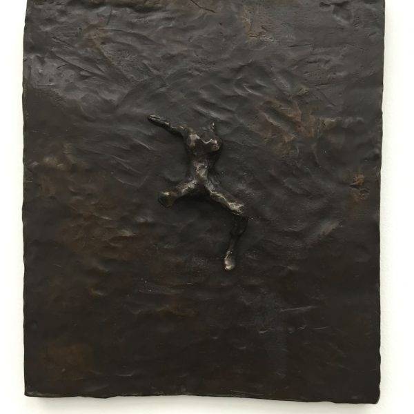 Reflective in tone, the works in the exhibition are the result of many years’ development, from the bronze sculptures – the most significant body she has made to date – to the works on canvas. There is a complexity in the sculptural form of the bronzes, simultaneously robust yet tender, that points to a consummate understanding of material, composition and subject matter. In Grotto (2014), a tessellated, cave-like chamber gives sanctuary to a solitary figure as artist proxy, while the muscular form ofBird (2014) harmonises sinuous lines with gravity and grace. A series of bronze bas relief plaques portray figures that appear amorphous yet distinct, with subtle interplay between light and shadow.