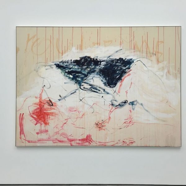 While the paintings at first appear simple and immediate, many of them are the result of application, obliteration and layering over a period of several years. Emin repeatedly returns to the canvases as a means of reviewing, revising and reconsidering her own position in relation to painting through temporal passages.