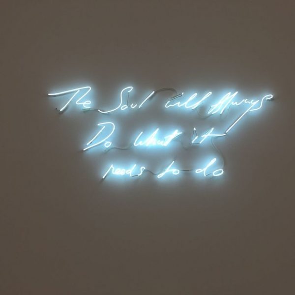 The title ‘The Last Great Adventure is You’, which is transcribed in neon within the exhibition, was originally intended by Emin as a reference to the ‘other person’; however, over the two year period since she began creating this body of work, she came to realise that the implication was once again coming back to the self.