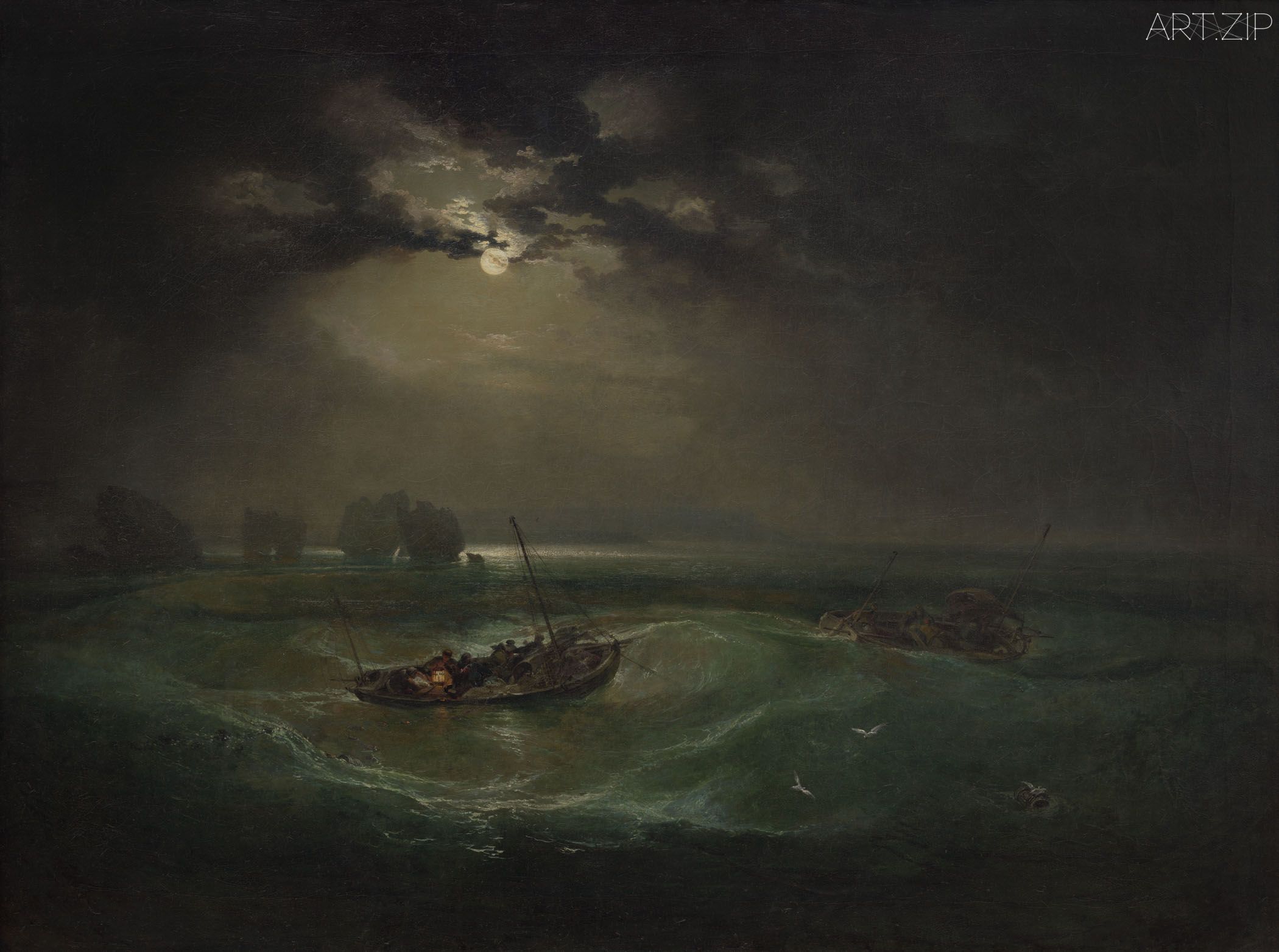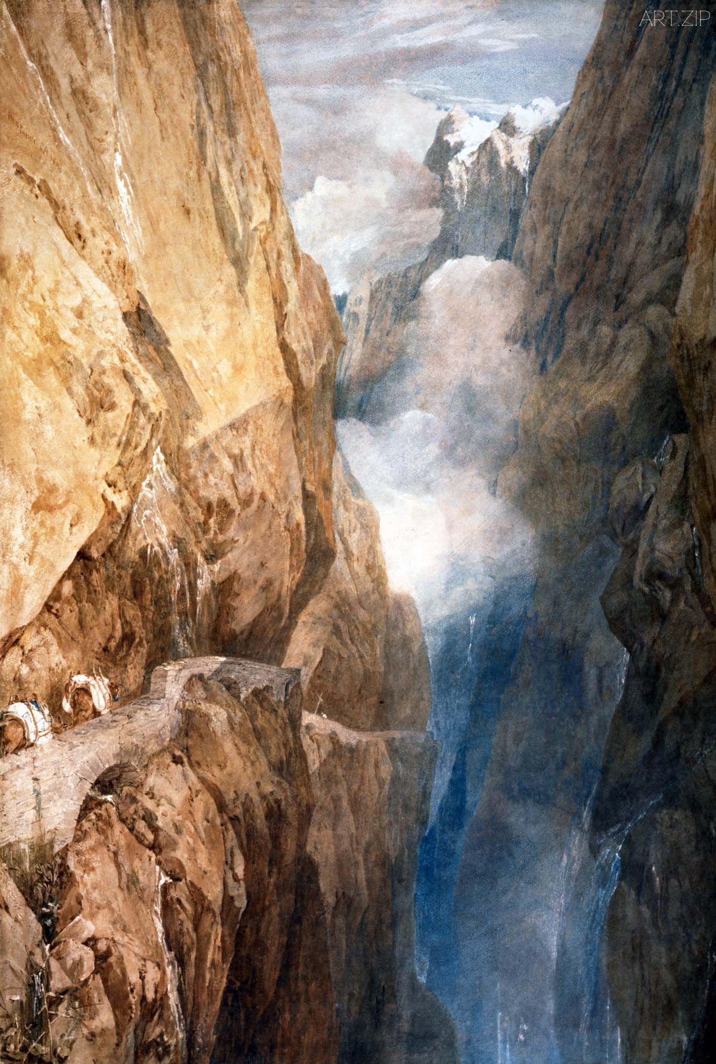 到了19世紀30年代,特納與康斯特博都因大膽拓展風景畫而備受推崇,他們鮮明的風格差異也使評論界不斷將二人並置為競爭對手。1831年,康斯特博主動在皇家藝術學院將自己的《從草地眺望索爾茲伯里大教堂》(Salisbury Cathedral from the Meadows)與特納的《卡利古拉的宮殿與橋》(Caligula’s Palace and Bridge)並排展出,更加讓評論家們對特納明亮神話式意大利景致與康斯特博潮濕英格蘭風光進行了對比,被譽為「水與火」。這兩幅作品在這次展覽中再次被放到了一起,讓觀眾們再次體驗這種「水火不容」,也可以說是「水火交融」。