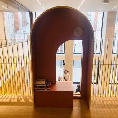 建築團隊還與當地學校密切合作,例如,索霍教區小學(Soho Parish Primary School)的學生不僅參與空間設計,還親手製作建築模型。他們還希望有一個安靜的閱讀與創作角落,這一靈感最終促成了「碎片小屋」(Fragment Houses)的誕生——這些與館藏畫作呼應的小角落讓孩子們可以在其中閱讀、素描或發揮創意。而前廳的劇院式階梯座椅(theatre steps)靈感則來自於學生們的觀察,他們喜歡在中央大廳外的馬賽克台階上素描、交談、沈思,這種開放而自由的互動方式促成了這一設計。