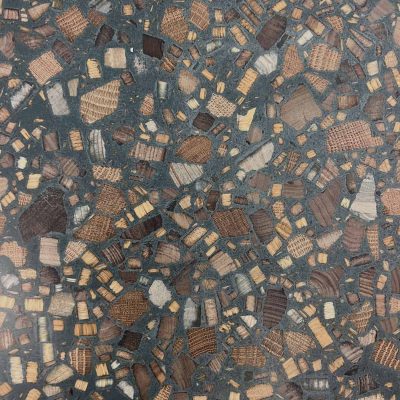 Reclaimed wood from the Gallery’s framing department has been repurposed to create new seating, with the natural textures and colors of different woods still visible, offering visitors a tangible connection to the materials.