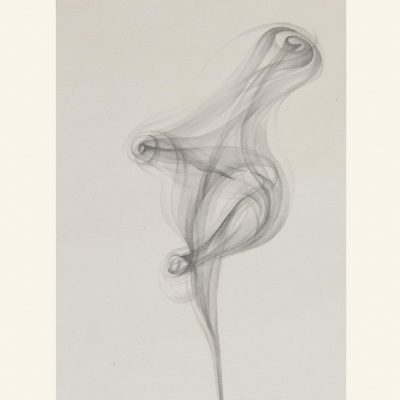 姜嘯然,自幼學畫習字,在南開大學東方藝術系經過本科研究生六年的學習,隨後畢業於英國倫敦藝術大學切爾西藝術學院,於2009年獲得純藝術碩士學位。姜嘯然結合生活經歷,融合對中國書法與繪畫的研習以及對⻄方藝術發展脈絡的理解,創作出了《煙》系列作品,透過具象的圖像來表達抽象情感。《煙》源於對命運這一概念的探索:命運始於某點,卻通向未知的彼岸。我們的生活充滿了不確定性,我們身處命運的旅途之中,同時也融合了多重旅程的軌跡。因其抽象形態的和不可預測的變幻,姜嘯然选择以煙霧來表達這一觀念,彷彿映照了命運的多樣性,以及我們交織在其中的旅程。 畫面只有簡單的黑白,將人們的注意力引向煙霧的形狀,而非色彩本身。而絹這種敏感而脆弱的材料,正如人類一樣脆弱,但在命運的面前,我們依然需要堅韌不拔。