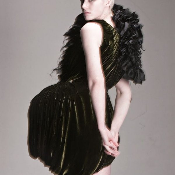 Bai also deliberates over the choice of materials after experiments. Inspired by medieval art works, she chooses silk and velvet to represent grace and mystery. Moreover, hand-sewn pleats make a strong contrast between the reflection and shadow of velvet, which creates a mystery and impressed all the audience.