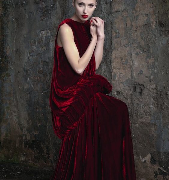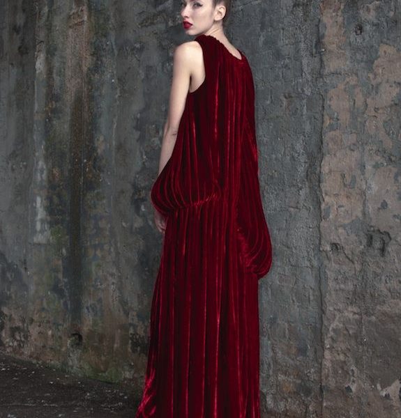 在材料的選擇上,白潔也是經過深思熟慮的。受到中世紀繪畫作品的啓發,真絲絲絨質地高貴而又具有神祕氣質,這與她整套作品的初衷相得益 彰。全手工縫製的褶皺處理,使得絲絨的反光與陰影形成強烈的對比,這種神秘感更加打動觀眾。