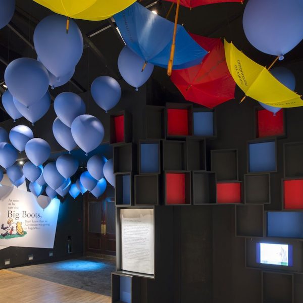 Tom Piper, the designer of the field of poppies artwork Wave and Weeping Window, has worked with RFK architects on the exhibition design. As well as featuring the largest ever selection of prints and drawings, the exhibition will include a large-scale, immersive family section reimagining scenes from the most famous stories such as Poohsticks Bridge, the Bee Tree and Eeyore’s house, with many interactive elements to engage younger visitors, including dressing up areas, storytelling trees and a ‘picnic’ drawing table. Universally recognised motifs of Winnie-the-Pooh will feature around the exhibition such as balloons and umbrellas, and Milne’s words will be made physical as playful mobiles and 3-D poetry.